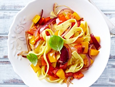 Tags: Recettes végétariennes | Été | Pâtes alimentaires | Pour débutants | Recettes rapides | Basilic | Huile d'olive | Oignon | Parmesan | Pâte alimentaire | Poivron rouge, vert, jaune | Ricotta | Cuisson à la poêle | Cuisson à la casserole | Recette été