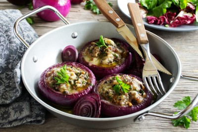 Vous êtes végétarien ou vous n'aimez pas la viande ? Cette recette d'oignons farcis acidulée et rassasiante est faite pour vous.