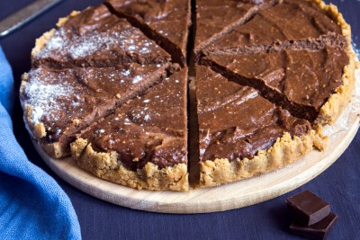 Une tarte au chocolat au lait et caramel au beurre salé à la saveur contrastée pour un dessert original.